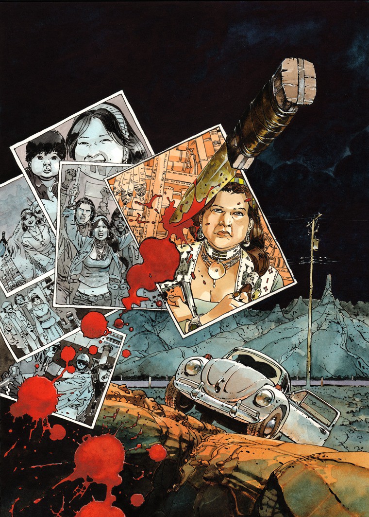 Aussi loin que je me souvienne j’ai toujours adoré les histoires d’indiens. Pendant des années je voulais en faire mon métier, chevaucher dans les plaines, chasser le bison et trouver mon animal totem. Encore maintenant j’ai tendance à lire absolument tout ce qui se présente et qui parle d’indiens. Mais en bande-dessinée il était difficile de trouver des choses sérieuses –à part dans le sévère Blueberry. Cette quête m’avait un peu éloigné de la bande-dessinée avec les excellentes nouvelles de Dorothy Johnson, Sherman Alexie ; les romans d’Howard Fast, Jim Harrison et quelques autres. Mais jamais je n’avais trouvé cette intensité, cette vérité crue qui habitait ces récits sauvages jusqu’à la première publication de Scalped.