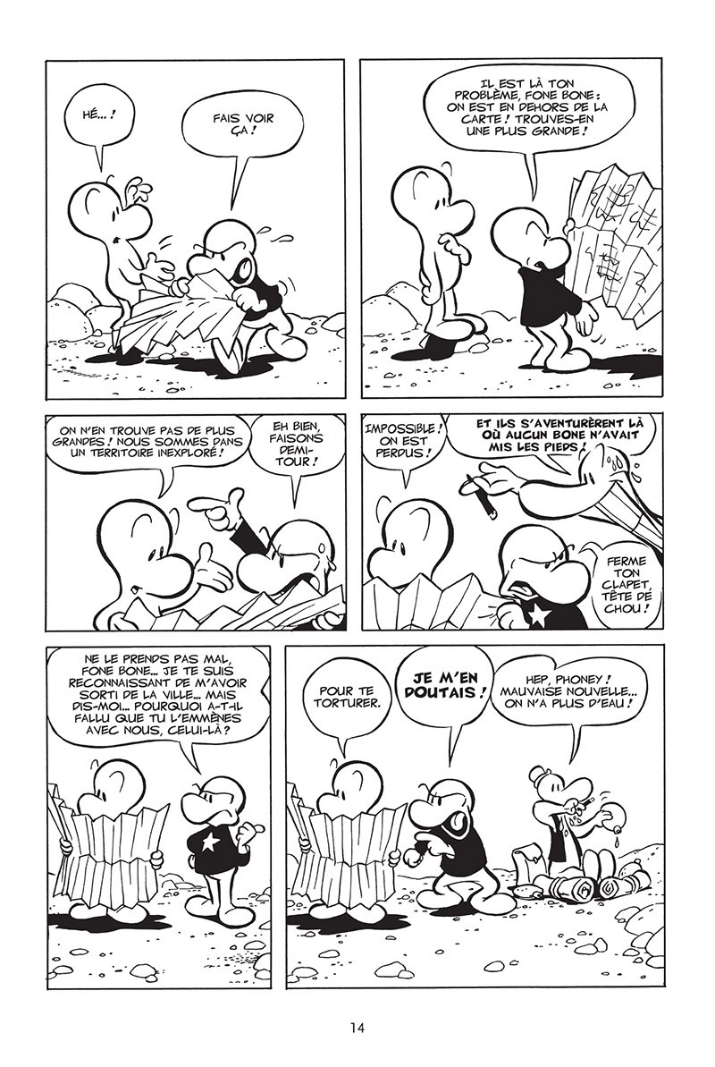 Avec un vrai sens du rythme et du suspens, Bone alterne plusieurs duos comiques dans cet univers médiévale-fantastique très sombre et développe une série aux personnages attachants.