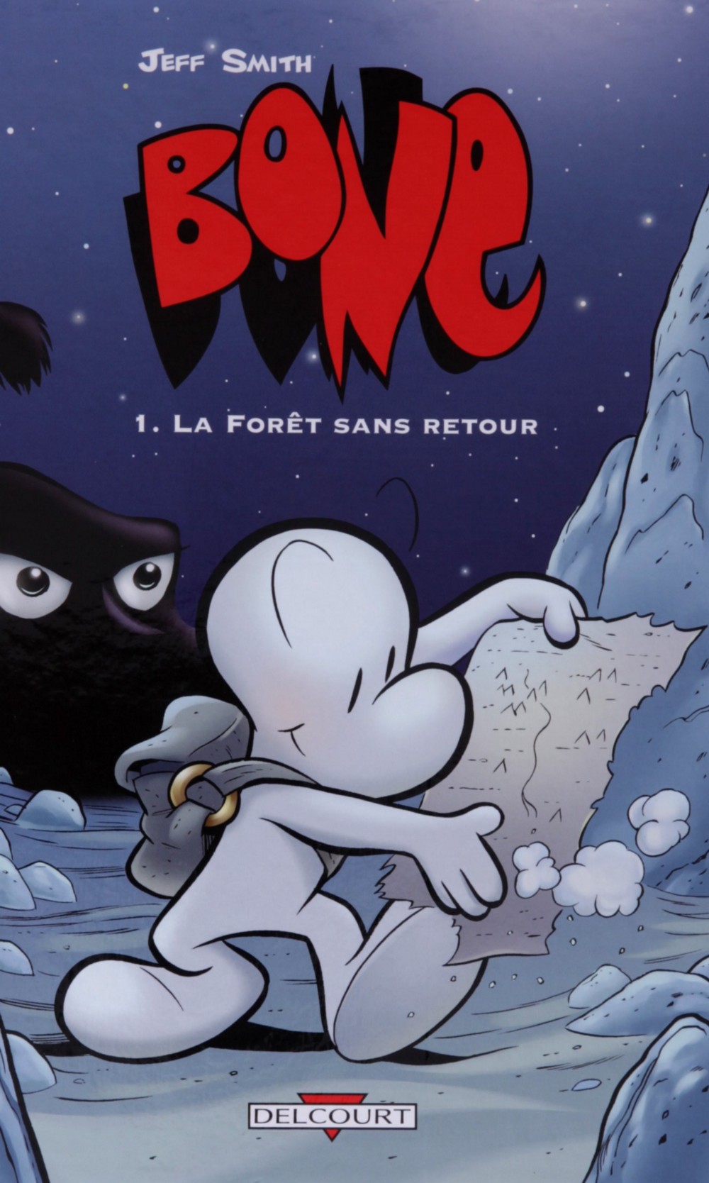 Perdus, les cousins Bone (Fone Bone, Phoney Bone et Smiley Bone) débarquent au beau milieu d’une grande guerre dont va dépendre la survie de l’univers. Les trois compagnons quittent leur ville suite aux magouilles de Phoney Bone, Smiley Bone est un hédoniste sans ressources et le dernier, Fone Bone est un rêveur en quête d’aventures. Ces trois créatures au physique de schtroumpfs albinos vont devenir les éléments clefs d’une prophétie qui va mettre le pays à feu et à sang.