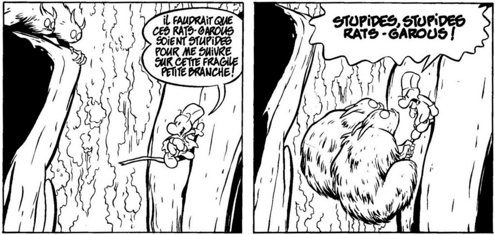 Avec notre Fone Bone amoureux de Moby Dick (et de Thorn en secret), les deux autres Bones forme un duo à la Laurel & Hardy (ou plutôt Joe & Avrel Dalton) très convaincant donnant une autre saveur à cette histoire épique. Et puisque l’on parle de saveur, comment ne pas mentionner les géniaux rats-garous, qui ne pensent qu’aux recettes et modes de cuisson pour accommoder leurs ennemis en quiche ou autre ragoût. Heureusement ils tombent entre les mains de la jeune Thorn et de Mamie Ben, deux héroïnes de choc qui vont prendre les choses en main et s’opposer à l’ombre maléfique qui fédère les monstres dans les montagnes.