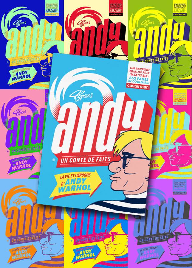 Résumer la vie d’Andy Warhol, ses proches & son influence en bande dessinée telle est l’ambition de Typex, artiste néerlandais rompu à l’exercice (il avait déjà brossé le portrait d’un autre génie populaire Rembrandt.) Avec la même méthode, il va découper la vie de l’artiste en chapitres clefs, cherchant à mêler éléments biographiques, citations, fictions & œuvres de l’artiste. Pour Andy, il pousse le vice à réaliser chaque chapitre sous forme d’un comics indépendant, avec un style et une approche différente à chaque fois : le livre se présente comme un recueil imposant (560 pages) de 10 numéros uniques couvrant une partie de sa vie. Cartoon, réalistes, roman noir, soap… chaque style utilisé influe aussi sur la narration et le propos. On a l’impression que plusieurs artistes se sont penchés sur la question avec à chaque fois un point de vue différent sans jamais verser dans l’excès d’informations.