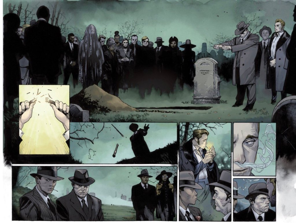 Le dessinateur Olivier Coipel s’amuse à créer une version gothique, avec un « look prohibition » des années 30 pour ses planches qui se déroulent à notre époque principalement à Chicago, New York, Boston… Il adapte son style, aux hachures et traits noirs pour créer ses sombres héros, magiciens sinistres, monstres informes ou l’élégant Vénitien. Le dessin et l’encrage sont très travaillés pour mettre en valeur ces ambiances noires et fantastiques à tel point que l’éditeur a sorti deux versions, en noir & blanc et en couleur. Ce serait pourtant dommage de se passer des couleurs de Dave Stewart qui mettent bien en valeur les planches et participent de la mise en place des ambiances en accentuant les noirs et du jeu de fini/non fini des dessins de Coipel.