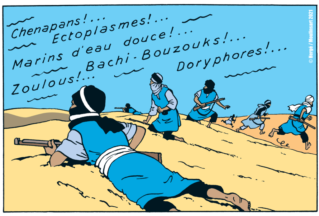 puis « Chenapans ! … Ectoplasmes ! … Marins d’eau douce ! … Bachi-Bouzouks ! … Zoulous ! … Doryphores ! … »