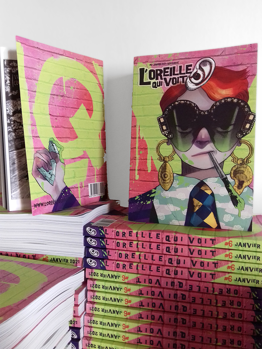 Manu, son rédacteur en chef précise : “Notre projet est de pouvoir étendre notre activité d’édition avec les artistes de l’équipe et faire vivre la revue le mieux possible. On organise aussi des Concerts Illustrés (un peu compliqués ces temps-ci…) avec musique et dessin sur scène.”