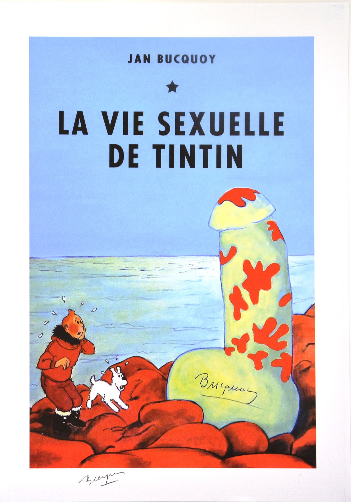 En 1980, un artiste belge Jan Bucquoy réalise des planches qu’il regroupe en album en 1993 : La vie sexuelle de Tintin. Un album parodique où la pornographie fait son entrée dans l’univers du reporter, abordant des tabous de la série, s’amusant à mettre les personnages dans des positions farfelues, bref à dévoyer le jeune héros.