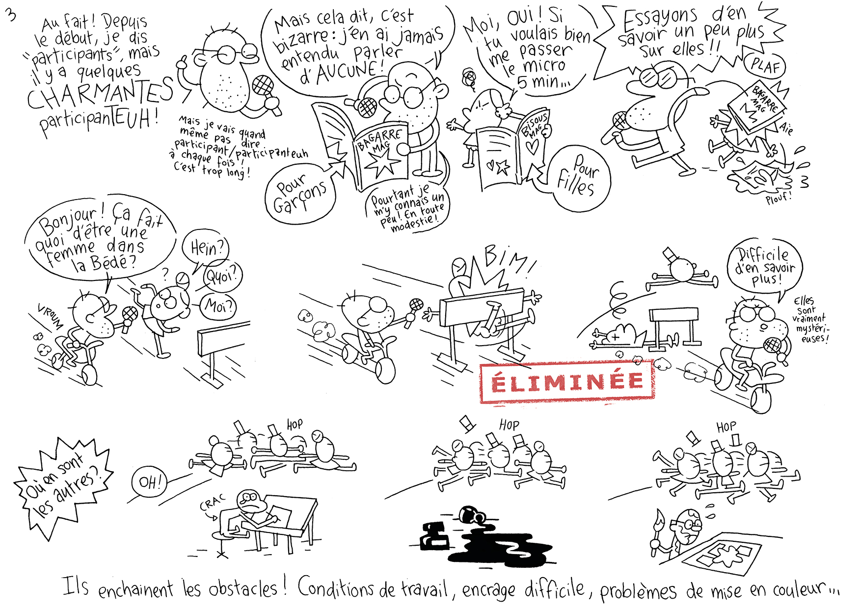 Dans cette discussion, les intervenants sont revenus sur plusieurs discours, notions ou assertions qui conditionnent la place des femmes, leur représentation, leur visibilité dans ce milieu éditorial. Considérations sociologiques, éditoriales, culturelles et économiques à partir de cette communication controversée de la part du FIBD pour rappeler que l’Histoire est aussi une construction, et que si les femmes en sont absentes il faut plus chercher du côté de leur invisibilisation que de leur absence (vous pouvez retrouver un compte rendu par Irène Le Roy Ladurie ici).