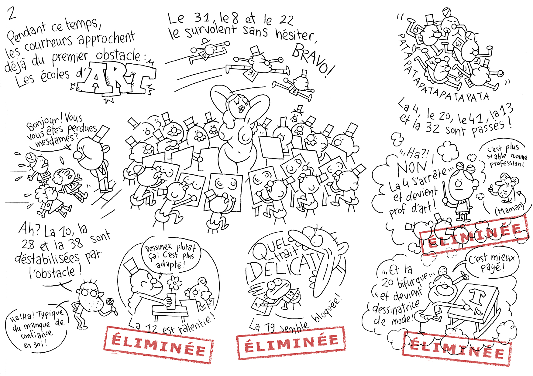 Un exercice complexe pour traduire ces notions tout en restant accessible et ludique, où l’autrice trouve un axe autour de l’une des étapes clefs décrites par Jessica Kohn : la non accession à la publication en album.