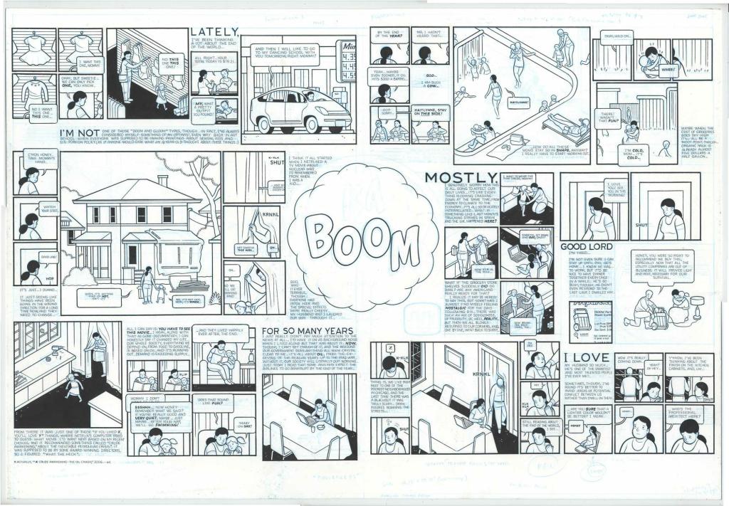 Les deux entretiens qui sont au cœur de l’ouvrage sont passionnants et intrigants, car ils se situent à 20 ans d’écart. Pour le premier en 2003, Chris Ware n’a pas encore attaqué Building Stories ni Rusty Brown, ses deux ouvrages majeurs en termes de structure et on peut sentir l’évolution de son travail et de ses réflexions entre les deux rencontres avec Benoît Peeters.