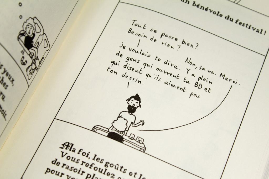Et tout le plaisir n’est pas tant dans la quête du Prix du meilleur album que celui de découvrir les situations loufoques — et malheureusement tellement crédibles — que vit l’héroïne dans sa carrière d’autrice. Tout le gratin de la BD y prend pour son grade, auteur.trice.s, éditeurs, libraires, festivals, journalistes ou lecteurs & lectrices tout le monde y passe. Tout le milieu de la bande dessinée passe au tamis de l’humour subtil d’Émilie Plateau et c’est à la fois très drôle et cela souligne les comportements sexistes, paternalistes ou misogynes qui sont bien présents dans la réalité.