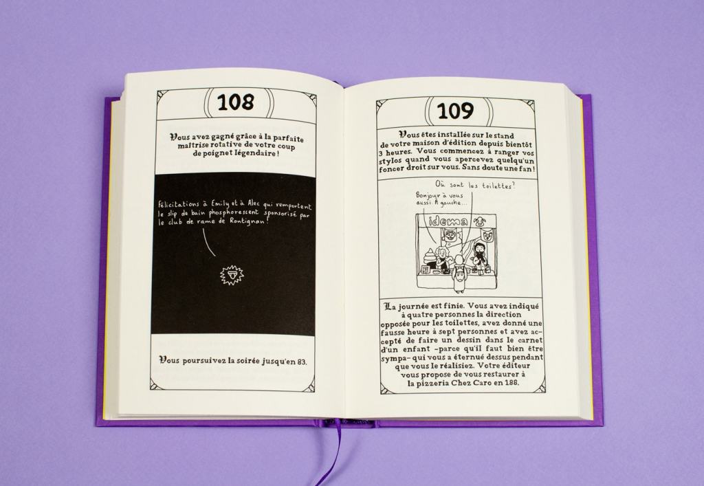J’espère que vous aimez sortir des sentiers battus, et que vous vous laisserez embarquer par ces livres-jeux aussi drôles que percutants. Si vous voulez découvrir le milieu de la BD sous un autre jour, allez en 122 🎲 ; si vous préférez vous caler sur le canapé pour observer les monstres marins allez en 448 🎲 ; si vous ne savez pas, jetez un œil sur les illustrations en 999 🎲 pour laissez faire le destin.
