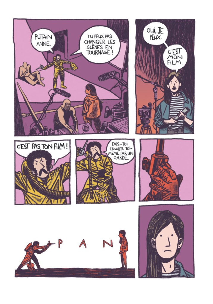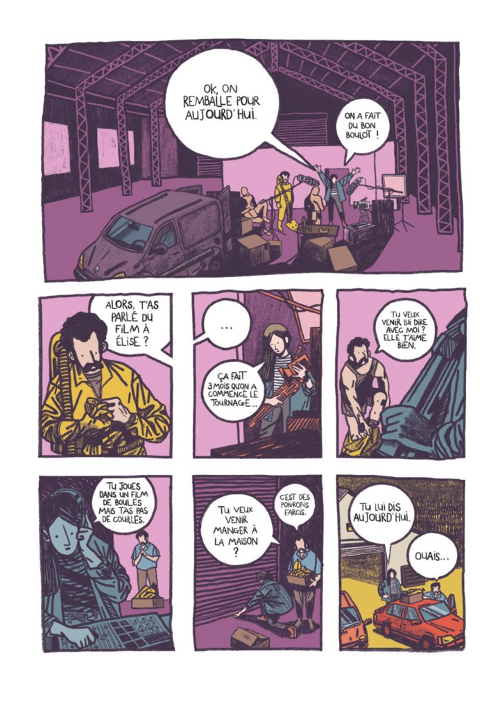 Derrière ces péripéties et toutes les galères du tournage, on suit le trio Anne, Fred et Élise qui composent avec leurs vies et ce tournage encombrant permettant à l’auteur de questionner ce qu’on est prêt ou non à faire par amitié ou par amour. Ces interrogations font face à des thématiques puissantes, celle de l’art comme moyen d’exister, de résister à l’oubli ou celle de la prétention de créer.