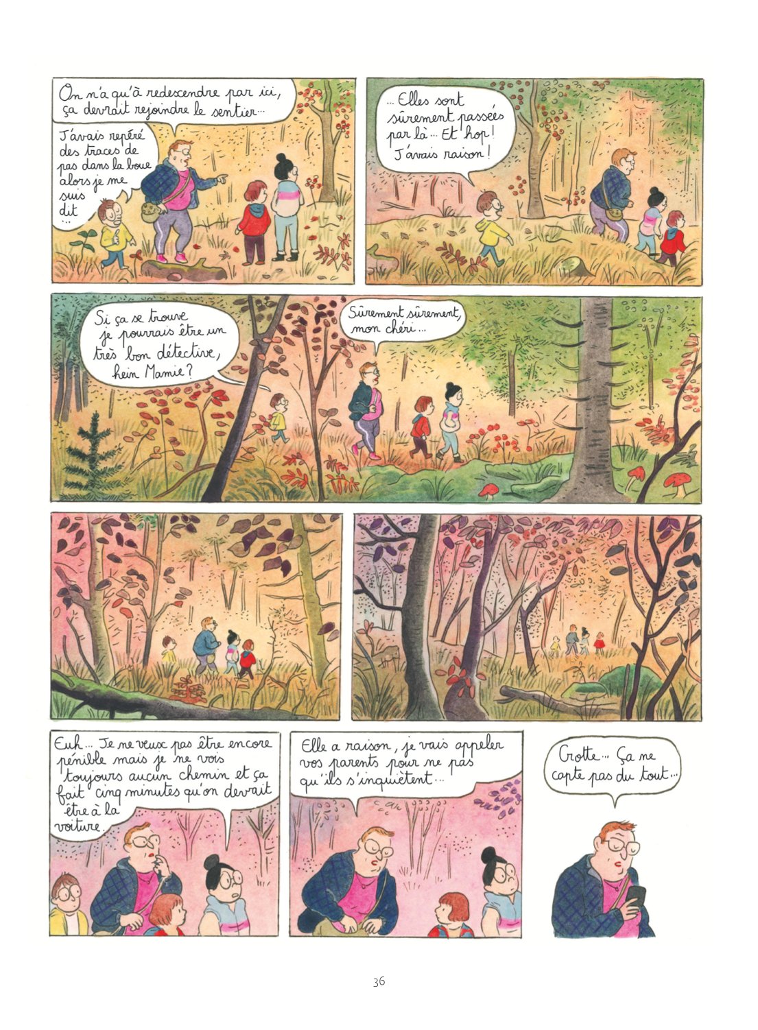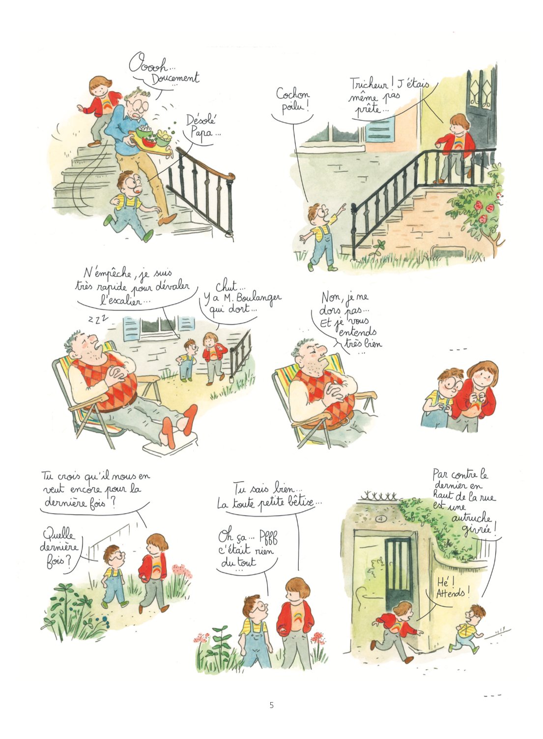 De la forêt au jardin familial, en passant par la fête foraine, les planches à l’aquarelle de Camille Jourdy participent de l’enchantement qui nous fait adopter immédiatement l’univers. À la beauté des décors répondent les détails des cases qui débordent —on retrouve ici d’ailleurs la proximité avec Tom-Tom & Nana et ces intérieurs pleins de vie et de secrets.