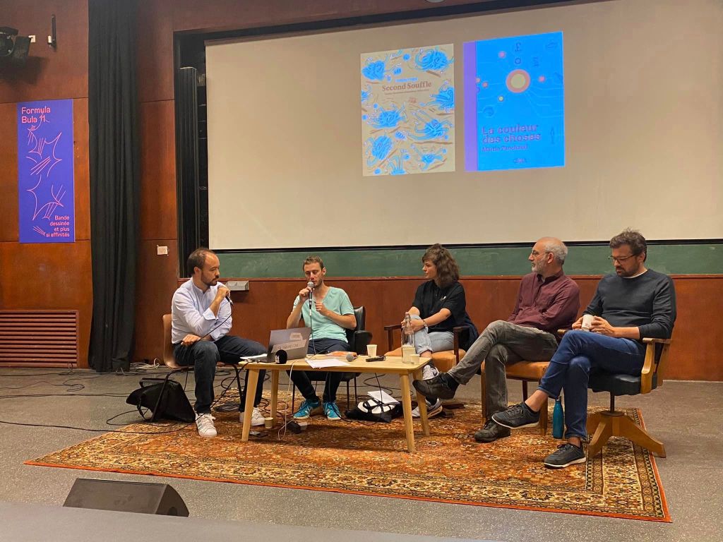 Frédéric Hojlo : « Je n’ai pas encore trop eu le temps encore, il y a eu une rencontre à Formula Bula [Note du rédacteur : lire notre interview de son directeur artistique] où j’étais invité pour participer à une table ronde destinée aux professionnels. Pour un public de bibliothécaires et médiathécaires surtout ; une table ronde sur la bibliodiversité intitulée “la bibliodiversité est-elle un sport de combat ? ». J’étais en compagnie de Soizic Cadio, elle-même bibliothécaire, Martin Panchaud le Fauve d’or d’Angoulême le plus récent [voir notre interview ici autour de la Couleur des Choses] et son éditeur Serge Ewenczyk de la maison çà et là [interrogé dans Second Souffle]. Le retour était plutôt intéressant, on avait 60-70 personnes dans le public qui avaient l’air très attentives. Pas mal de personnes sont venues me voir sur le stand de Flblb pour discuter un peu, prendre des livres après cela…