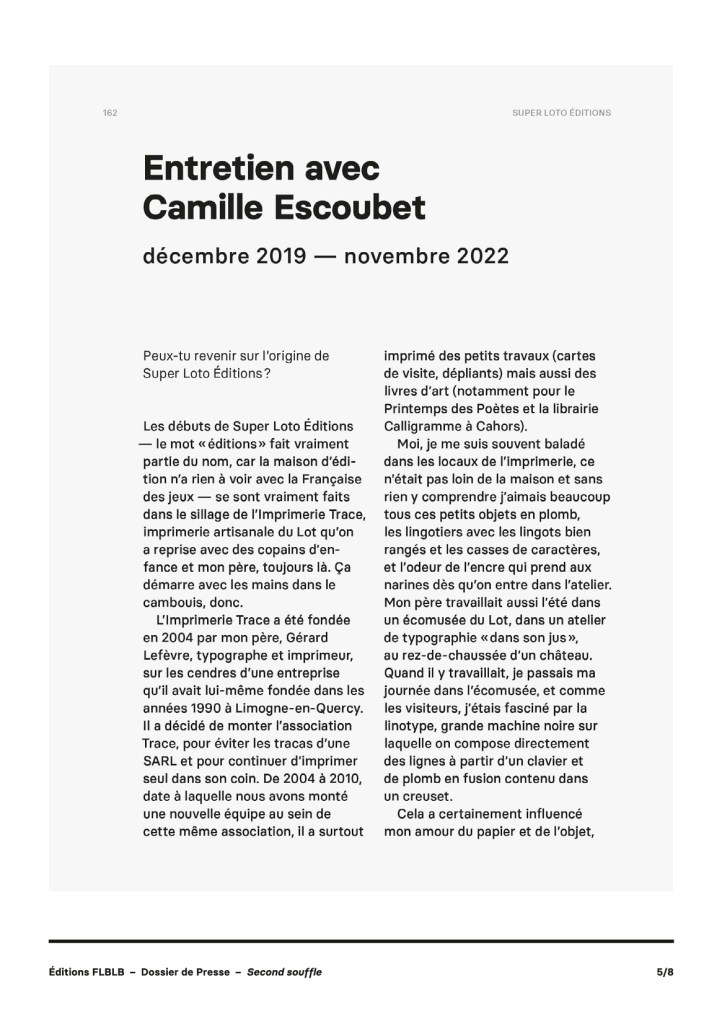 Après cet entretien avec Frédéric Hojlo, il ne vous reste plus qu’à découvrir ceux des éditions Atrabile, L’Employé du moi, Flblb, The Hoochie Coochie, Matière, Misma, ça et là, 2024, Super Loto Éditions, Biscoto, Adverse proposés dans ce livre.