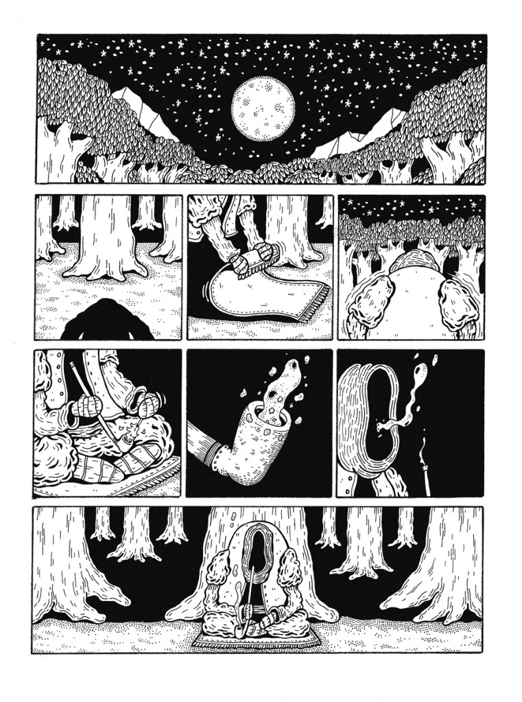 Stanislas Moussé : C’est un one-shot mais oui : je voulais ce personnage du conteur, qui apparaît au début, au milieu et à la fin du bouquin, et qui encadre toute l’histoire.