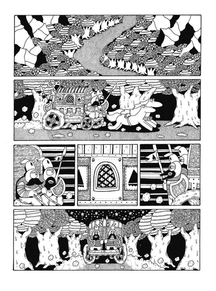 Stanislas Moussé : Je voulais travailler sur un jeu du chat et de la souris, comme dans les vieux cartoons : avec mes personnages, qui se font courser pendant toute la BD par les chefs d’une armée.