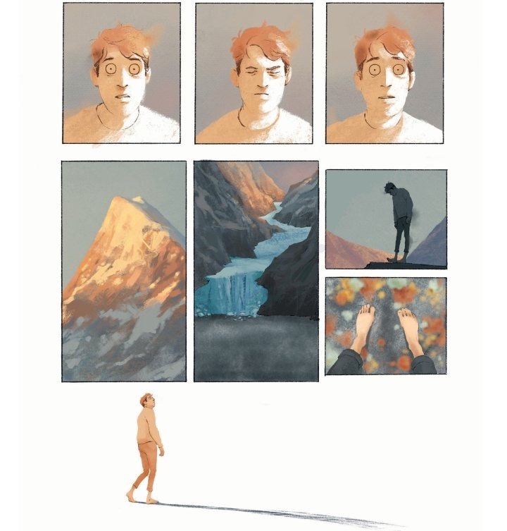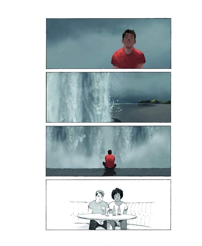 Les pleines pages donnent à ressentir les émotions des personnages plutôt que les expliquer ou les faire passer par un dialogue. Aux lecteurices de décrypter les métaphores visuelles qui ponctuent les prises de conscience de Nick.