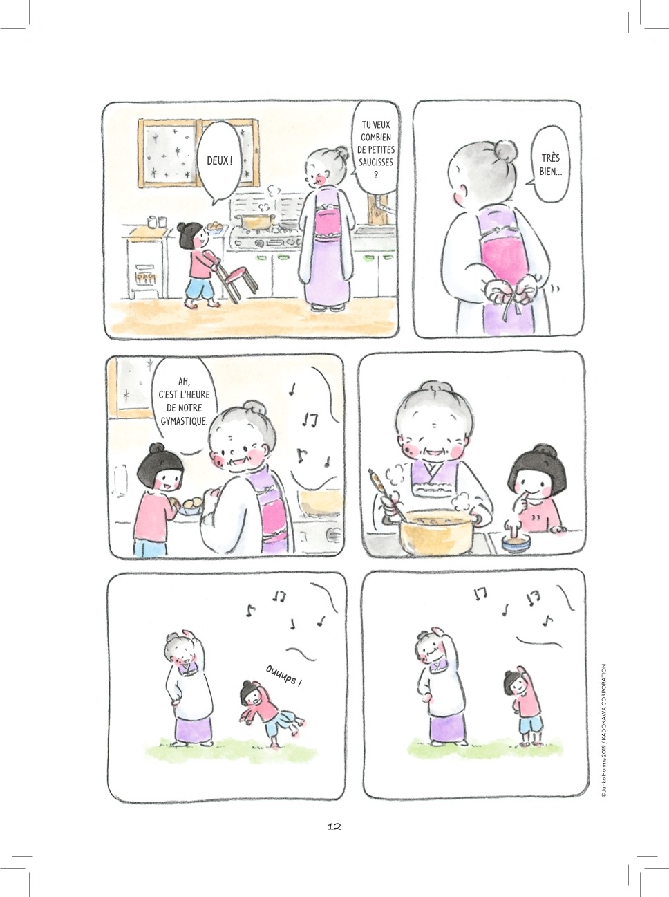 En lisant cette série, tu repenses à tes grands-parents, à ton enfance… Au-delà de l’histoire, il y a aussi la manière dont la BD est faite qui a été un élément important dans notre volonté de publier cette série. Cette série comprend à la fois des planches de manga et des pages remplies de 2 grandes illustrations et de textes. On avait l’entre-deux parfait entre le livre jeunesse qu’on retrouve à l’école des loisirs et la BD qu’on retrouve chez Rue de Sèvres. C’est pour cela que ce titre s’est rapidement imposé comme une évidence.