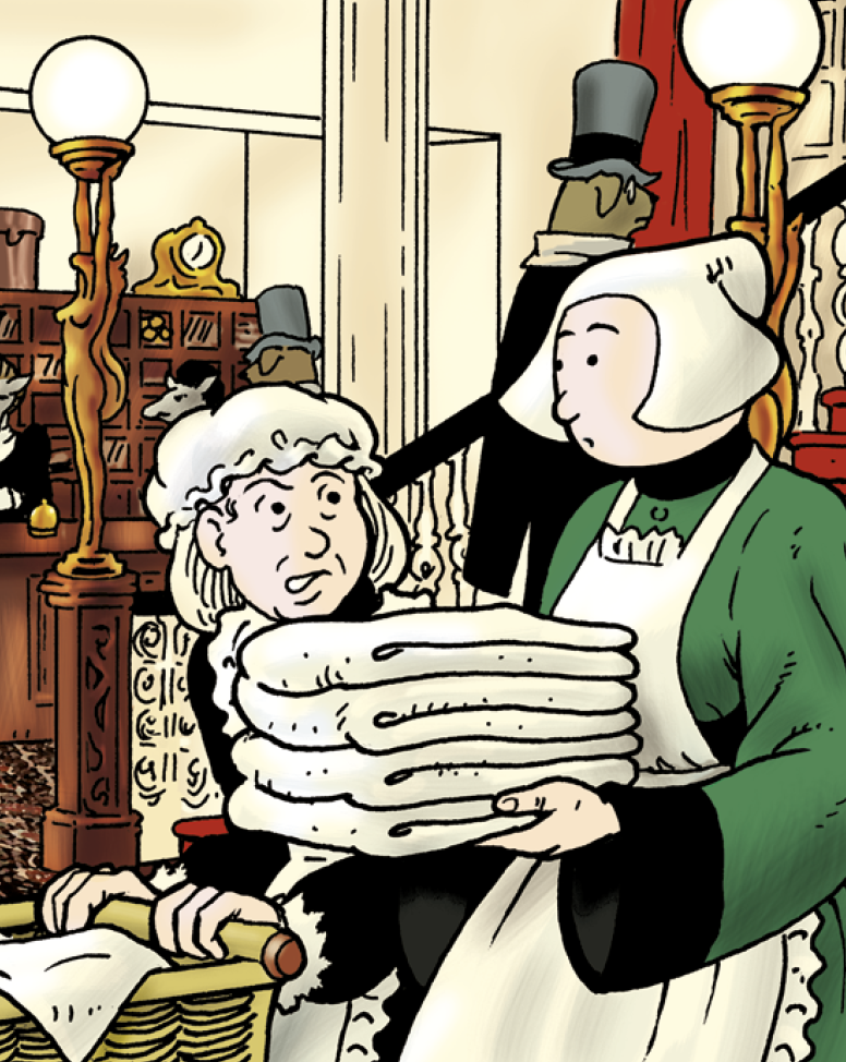 On peut voir un lien avec Blacksad et Canardo justement présentés dans « le fameux musée de cire de Mme Tussaud à Grandville » dans la section des détectives célèbres. En plus du clin d’œil, l’auteur intègre ces autres héros comme si ces fictions anthropomorphes faisaient partie d’un univers partagé puisque pour LeBrock ils sont aussi réels que son mentor Stamford Hawksmoor dont nous allons reparler.