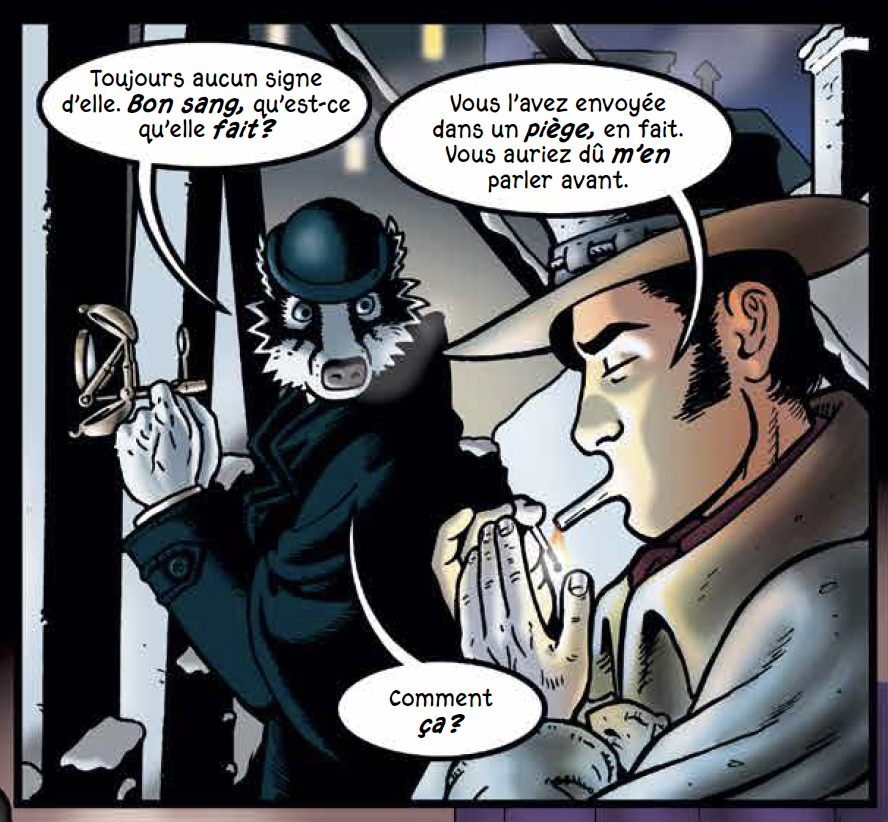Et pour peupler son univers animalier autour de ce blaireau proche d’un Holmes, le dessinateur s’amuse à emprunter certains caractères à la bande dessinée et en particulier la BD franco-belge pour mettre en scène cet empire napoléonien. Dans cette uchronie steampunk, Paris est devenue Grandville et les enquêtes se succèdent permettant à l’auteur de marier références artistiques et littéraires avec des scènes d’actions épiques, des moments intimes autour de son héros avec des complots au cœur de cet Empire français tentaculaire.