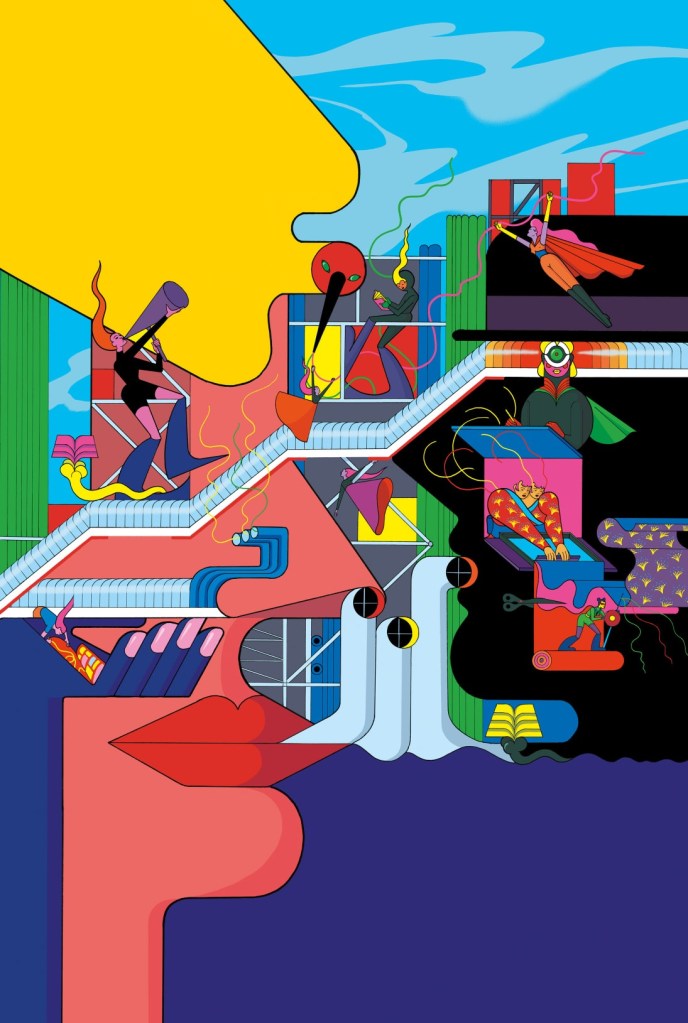 Dans la bande dessinée, on croise le rêve, la géométrie et l’espace urbain. On croise le fantastique… toutes ces histoires-là que l’on peut appréhender à l’intérieur de la scénographie.