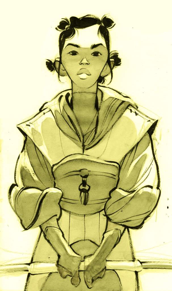 Tout m’a servi, surtout la culture tribale africaine, perse, marocaine et une pincée de la Corée féodale… J’ai trouvé un collage qui m’a satisfait. Évidemment, toutes ces références, je les ai trouvées en me documentant sur internet.