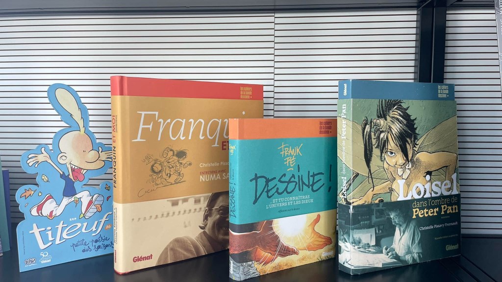 D’où le choix de ces trois premiers livres, il y a un livre de Frank Pé —un auteur qui n’a jamais publié chez Glénat— un livre sur Franquin et la réédition de mon livre avec Loisel.