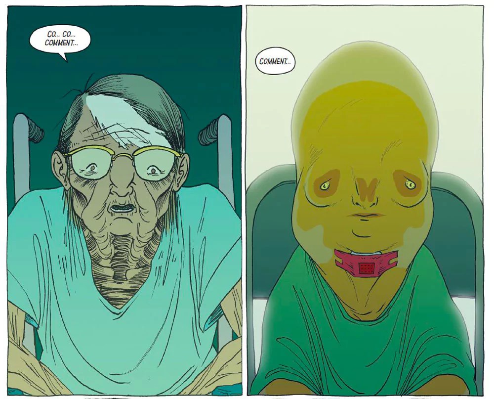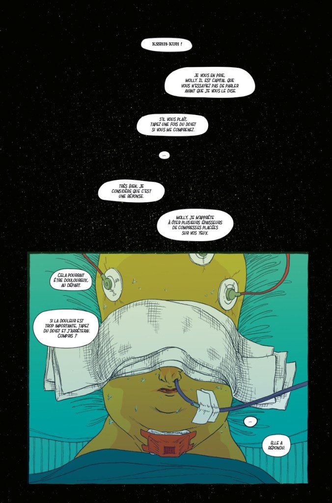 En restant autour de ce casting réduit, il aborde le racisme, l’exclusion, la fin de vie, mais également la foi, la transmission, l’héritage, l’appropriation ou la création. Cette mini-société presque confinée dans son centre d’expérimentation permet à l’auteur de questionner notre société à travers cet espoir contre nature. Entre le malaise graphique et la pertinence des interrogations en sous-texte, Ezra Claytan Daniels nous prend à rebrousse-poil avec intelligence et malice.