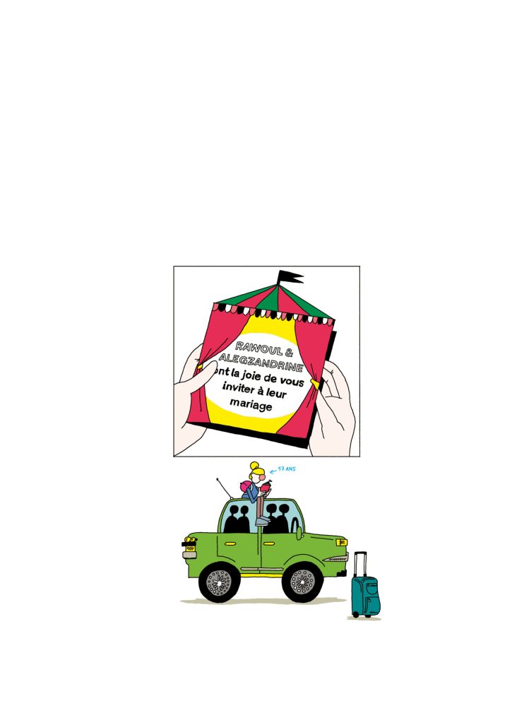 Sur la couverture la course effrénée de la famille Gugusse évitant les obstacles exotiques du Yolcame, en écho à celle de Ted et sa silhouette en forme de M étiré de l’album Ted, drôle de coco (Prix révélation 2019 au festival d’Angoulême & Prix lycéen de Genève). Émilie Gleason retrouve les personnages pour prolonger ces autofictions, où elle s’inspire d’anecdotes familiales pour donner vie à son univers loufoque inimitable.