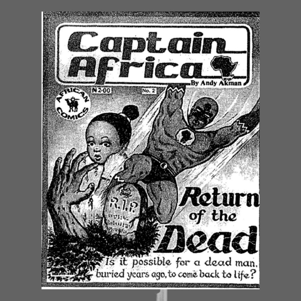 Captain Africa, du Ghanéen Andy Akman fait figure de marqueur et malgré une publication brève (autour de 15 numéros) à partir de 1987. Publié au Nigéria par l’éditeur African Comics Ltd., ce titre a ouvert la voie aux artistes africains, mais surtout une porte à l’international.