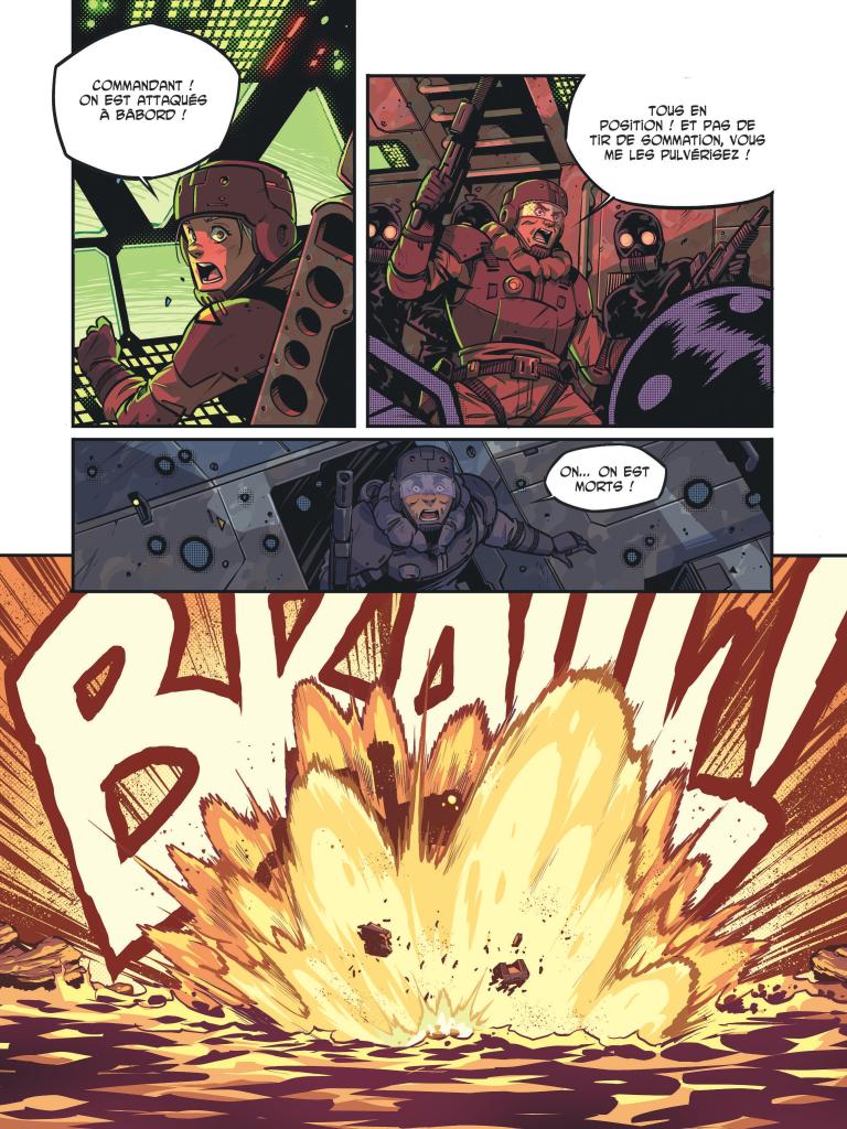 S. R. : Je me suis rendu compte en écrivant qu’il fallait l’épurer parce que j’allais avoir beaucoup de robots. Il n’y a que dans le T1 où le robot de fin est un peu dur au niveau du design, parce que je me suis rendu compte que ça allait être un enfer sur 150 pages.