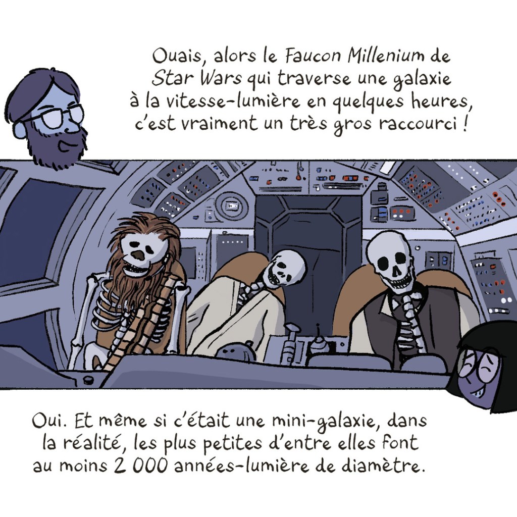 Les auteurs collaborent régulièrement avec la revue Ciel & Espace et manient parfaitement la pédagogie qui rendent à la fois l’ouvrage accessible à toustes avec une envie d’approfondir quand même certaines notions donnant aussi à lire aux amateurs. Le dosage est réussi et l’alternance entre bande dessinée et passages plus documentaires fonctionne parfaitement dans ce livre.