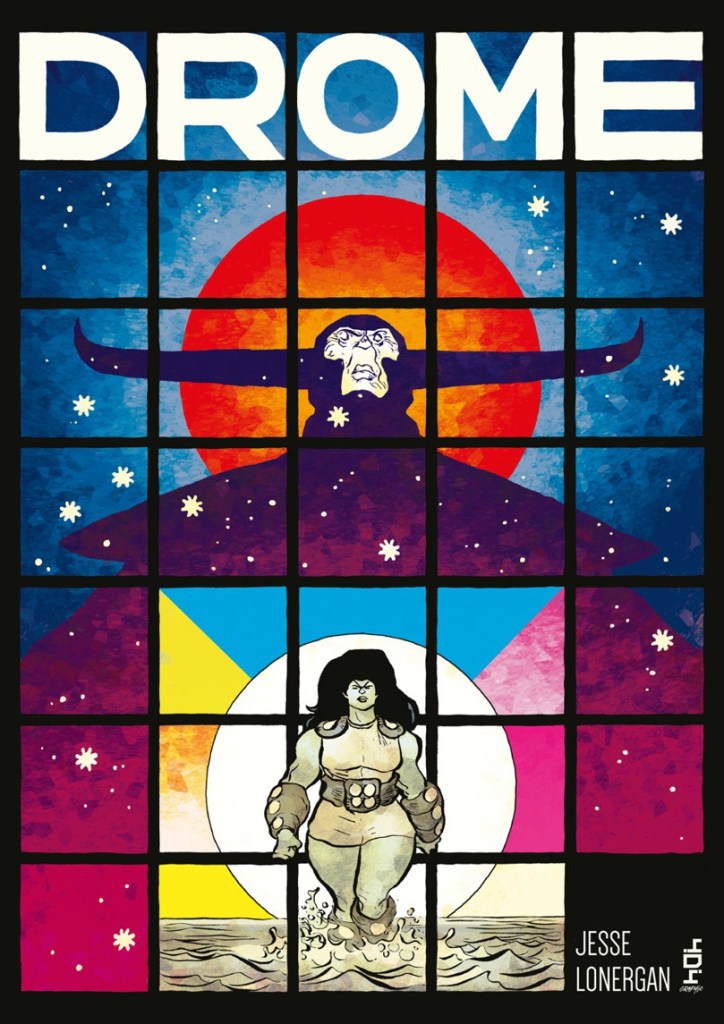 Avec cette science du découpage qui interpelle et qui marque, Jesse Lonergan s’est forgé une réputation internationale depuis sa révélation en 2020 avec son court récit Hedra nominé aux Eisner, après une première vie en auto-édition. Avec des gaufriers pouvant aller jusqu’à 35 cases par planches et une réflexion sur les codes, le sens de lecture et l’espace de la planche, Hedra puis Drome qui sort aujourd’hui offrent un plaisir de lecture à plusieurs dimensions.