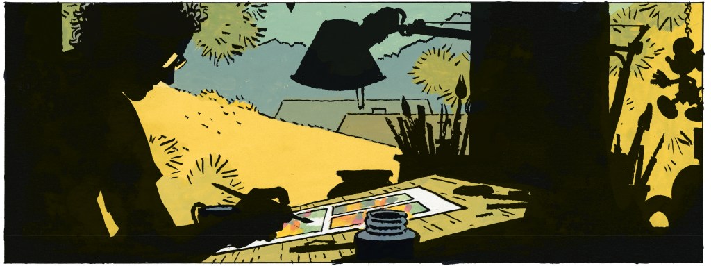 Elle doit toujours être au service du dessin qui, lui-même, est au service de l’histoire. En théorie, il n’y a rien de gratuit. La couleur n’est pas là pour être belle —après, on fait en sorte qu’elle soit belle— sa fonction première est de soutenir le dessin.
