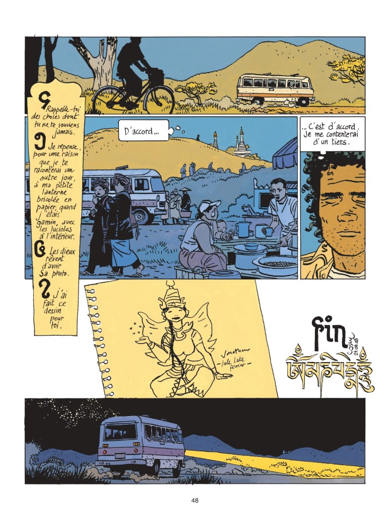 Cosey : Oui, je me suis amusé à faire ces pages, il y a même un dessin réalisé par Jonathan en Birmanie, dans l’album Elle ou dix mille lucioles.