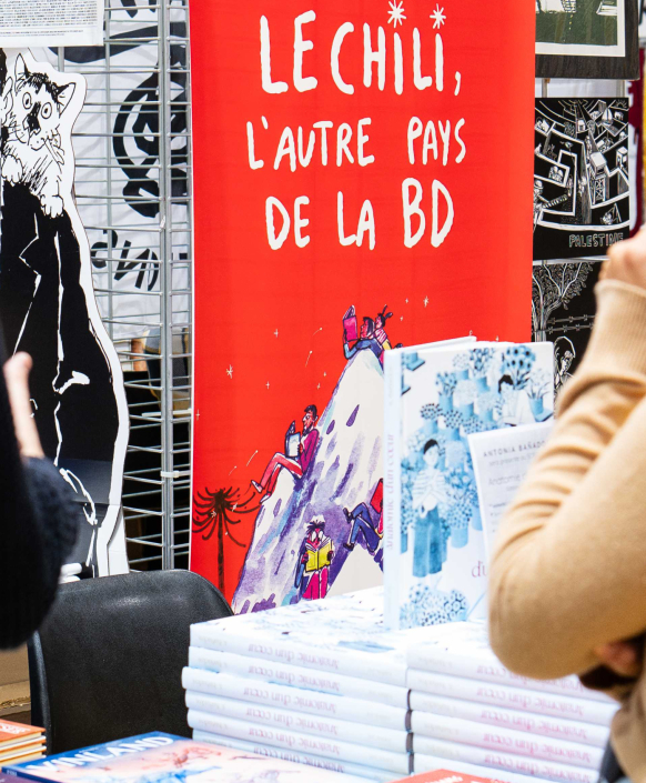 Les artistes Antonia Bañados, Sol Díaz, Rodrigo Elgueta, Sofía Flores Garabito, Germán Gabler, Alberto Montt, Panchulei, Maliki, Oficinisma, Félix Vega Encina seront présents tout le week-end en dédicace et tables ronde. La plupart des artistes ont des traductions françaises de certains de leurs livres à retrouver sur le salon et une librairie chilienne est également installée pour découvrir toutes leurs publications.