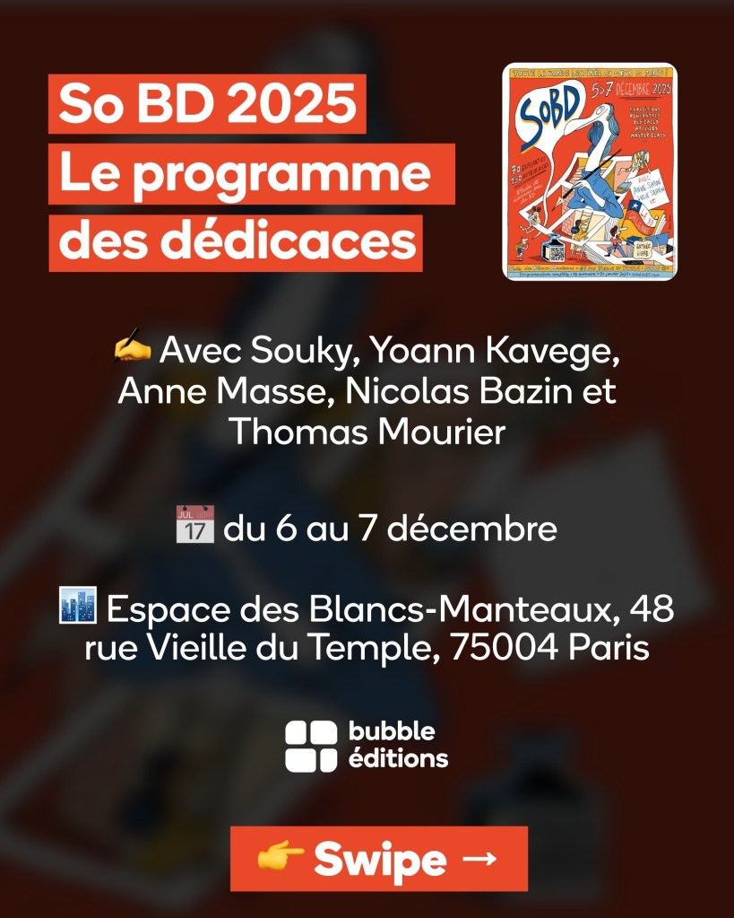 Rien à voir avec la programmation du festival cette fois mais je voulais absolument vous informer que pour la dernière dédicace de l’année, on a réuni 5 auteurices de Bubble éditions, c’est la première fois qu’ils/elle sont toustes réuni.e.s.