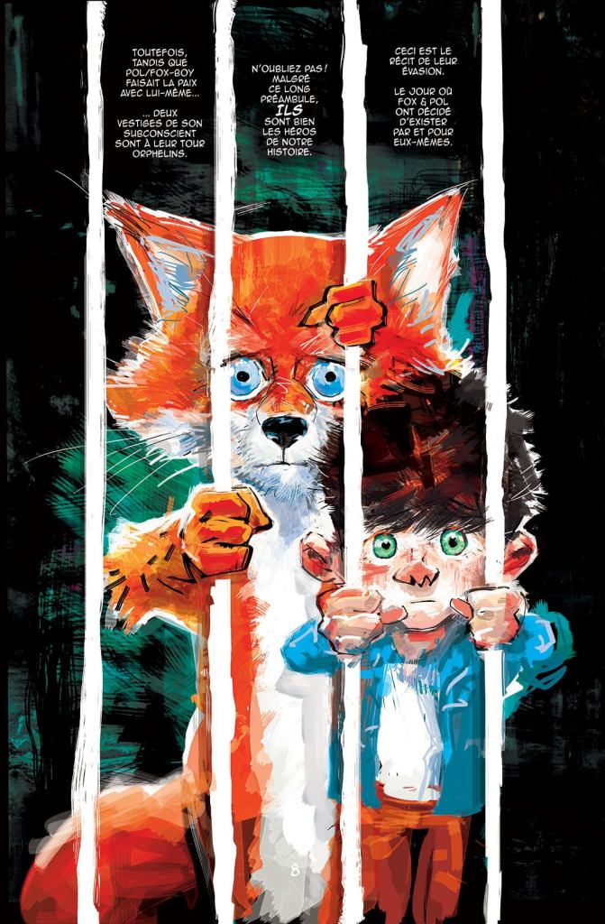 Dans ce monde où la vision d’un futur se brouille, s’efface, j’ai voulu montrer comment cela s’imprime chez Fox-Boy. Fox et Pol en seront les guides. Toute l’idée de faire un album sur la dépression où le personnage qui donne son titre à la série vient de là. Fox et Pol… ce ne sera plus un spin-off… mais bien le T4 de Fox-Boy. Sa suite officielle.