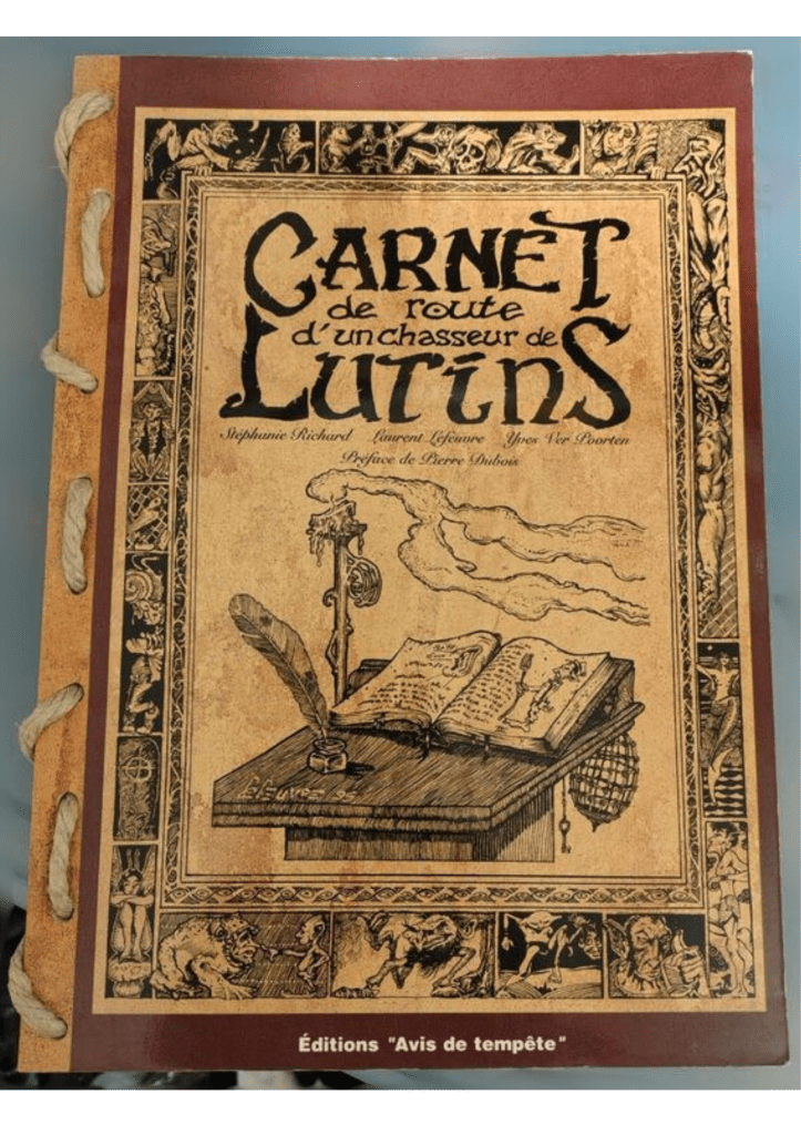 J’avais envie de parler du Carnet de route d’un chasseur de lutins. C’est un des premiers bouquins que j’ai acheté ado, avec mon argent de poche, je suis tombé sur ça dans un festival et j’ai trouvé complètement fou le côté relié avec la ficelle…