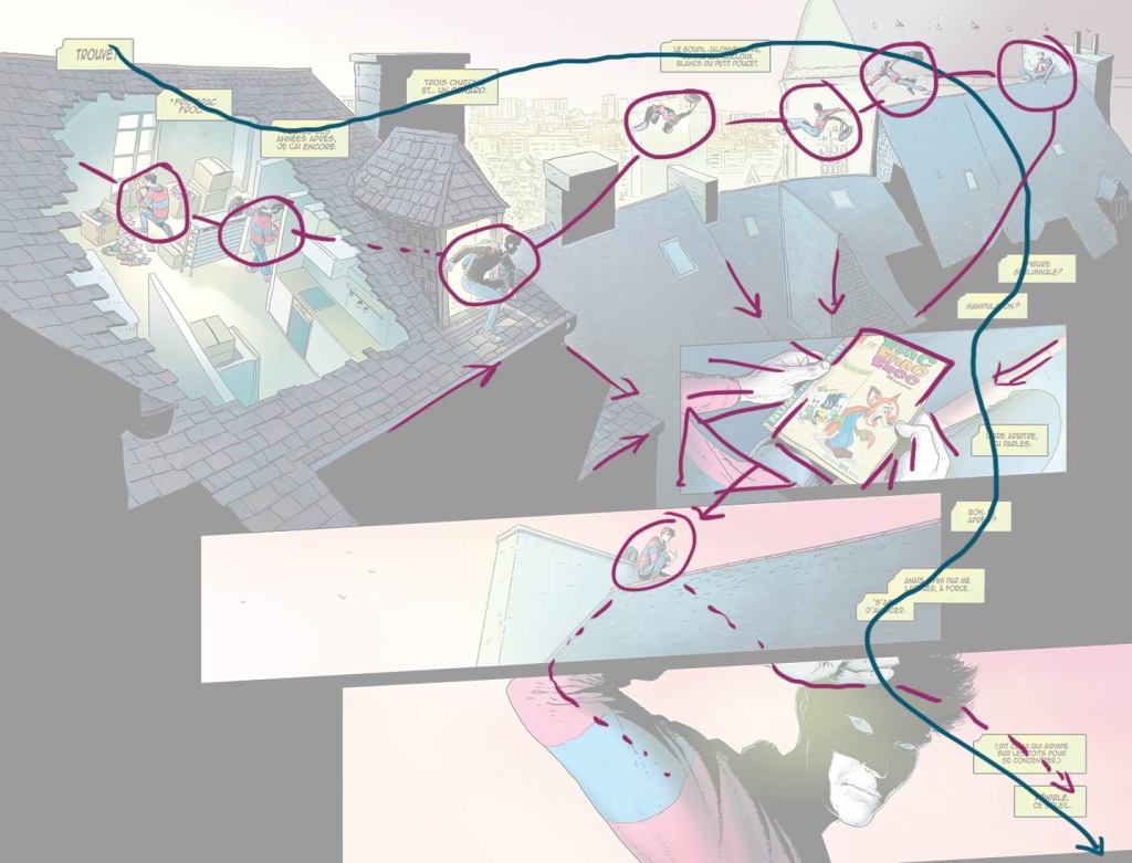 Ça dit mon rapport à la case de BD : tout petit, je pense que je les percevais un peu comme des fenêtres vers des mondes. C’est limite si gamin je ne me penchais pas pour regarder de biais pour voir si, derrière la gouttière blanche, je n’allais pas voir des bouts de décors de que je ne voyais pas quand je regardais en face.