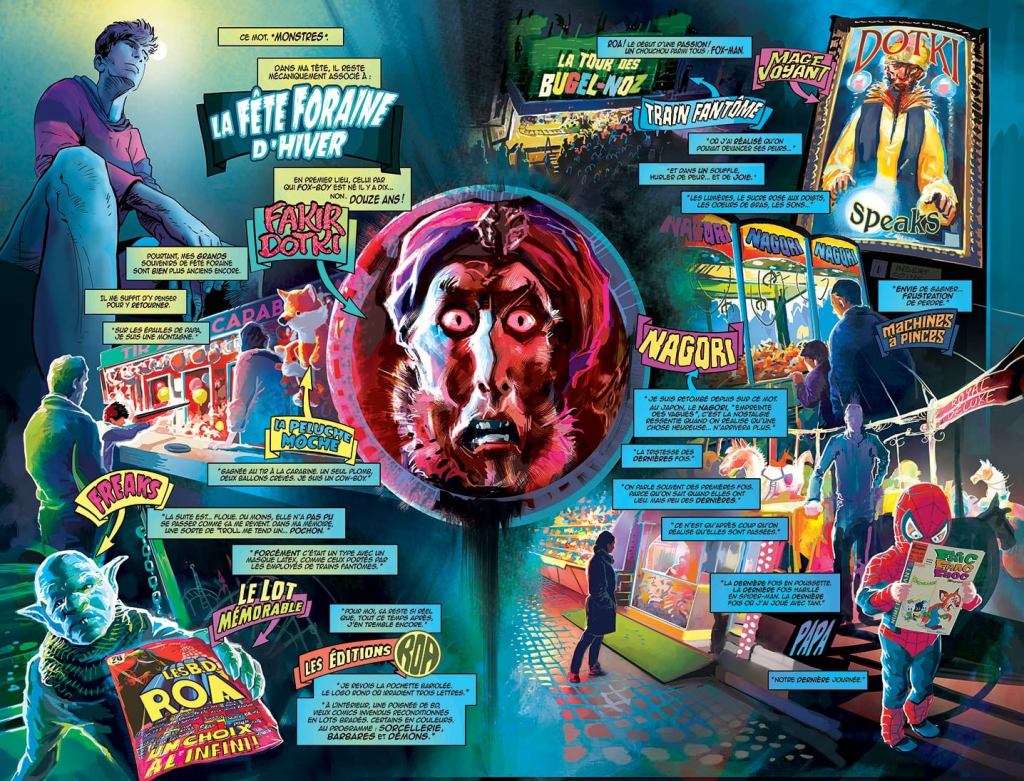 C’est aussi à ça que me sert le bouquin sur les éditions Roa : le nom des dessinateurs, les dates, les numéros de parution… c’est comme ma Bible du ROAyaume —c’est mon Marvel Handbook— donc je ne peux pas faire n’importe quoi à cause de ce que j’ai écrit spontanément quand je l’ai défini, entre 2009 et 2012 — à l’époque où ce n’était qu’un blog puis un livre. En ça, on peut dire que mes scénarios s’écrivent l’un après l’autre, mais que le monde dans lequel ils se déroulent m’est de plus en plus familier.