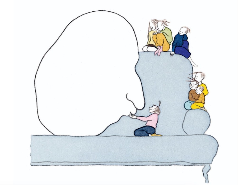 Les jeux graphiques laisseront place au langage lorsque la narratrice se décidera à partager son lourd fardeau. À la moitié du livre, les révélations, les morceaux brisés viendront briser ce silence et nous emporter dans un tourbillon de sentiments. Le dessin aux traits fins, aux textures proches de l’aquarelle ou des pastels prolongent ces métaphores ou symboles et nous immergent dans cette époque de l’enfance où tout est possible. Des sourires inquiétants de « la Grosse Tête » où une ligne tremblotante devient effrayante ou des cases encapsulées dans une bombe, la dessinatrice perfectionne son art de l’allégorie visuelle déjà très présente dans ses travaux d’illustration pour de nombreux journaux.