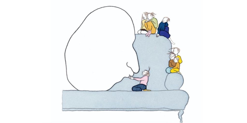 Si les plus jeunes s’en amusent et voient ces têtes qui déraillent comme des jeux et des occasions de rire illustrant au pied de la lettre les métaphores et les expressions ; de son côté, Martha les voit autrement. Entre la grand-mère qui perd seulement la tête, le poids des responsabilités, du silence, les corps abîmés… l’illustratrice joue sur la taille, les perspectives et les différences visuelles pour symboliser le passage à l’âge adulte et ce glissement du regard de Martha et de « la Grosse Tête » qui se rapproche d’elle. Des mécanismes d’emprise décrits à hauteur d’enfant à travers des images et des chemins détournés, jusqu’à l’abus sexuel où la jeune fille quitte le monde de l’enfance, ne voit plus les jeux ni le décalage.