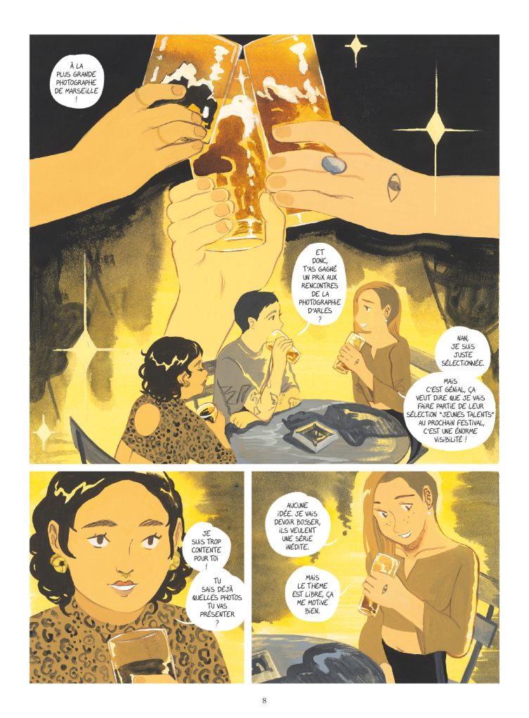Si cette histoire évoque ses sujets, et d’autres comme les inégalités structurelles, les normes familiales ou amoureuses, c’est aussi une belle histoire d’amitié et de découverte de soi dans une fiction très vivante. En mettant en scène ce groupe ancré dans une temporalité et des lieux proches de nous, Claire Fauvel touche juste avec ces héroïnes solaires et crédibles dans leurs échanges, dans leurs joies et leurs failles.