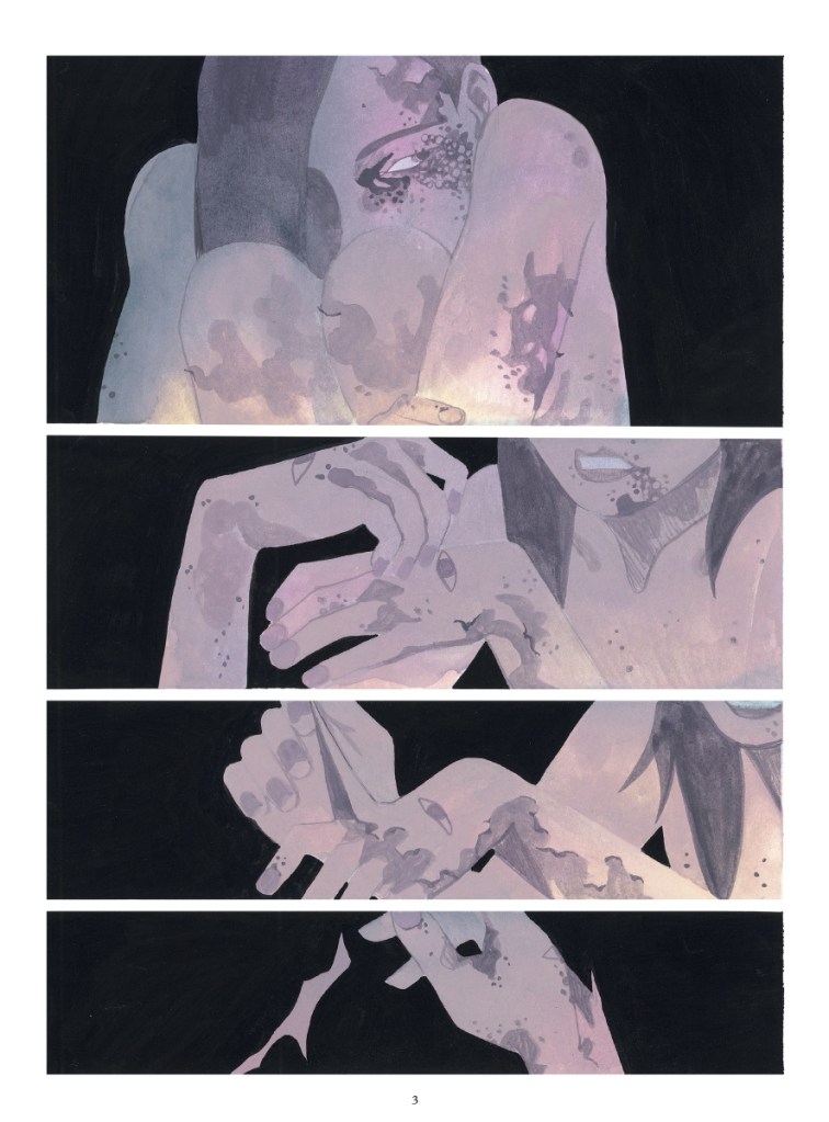 À travers les scènes de sexe, qu’elle garde esthétique dans de grandes compositions ou à travers le truchement de la photo réalisée par son héroïne, l’autrice explore en image les idées de son personnage.
