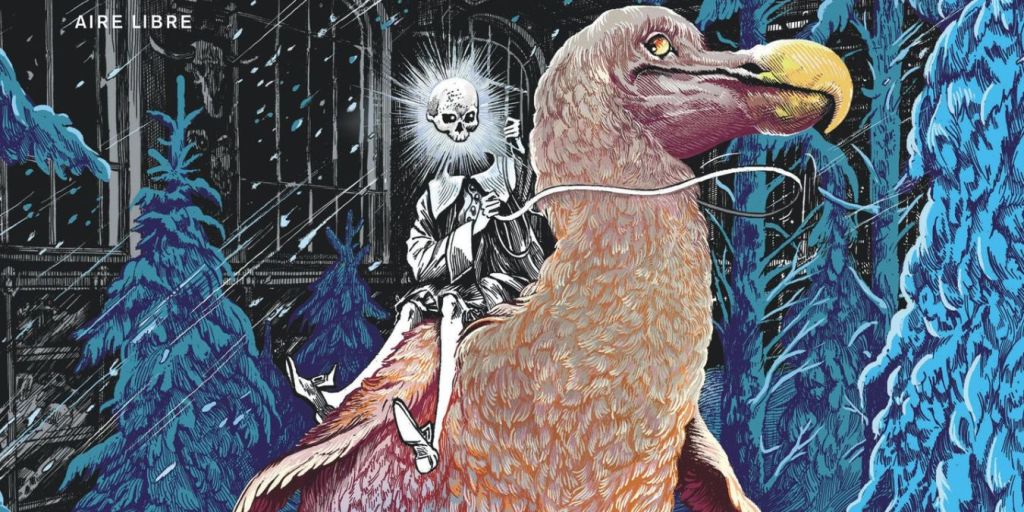 La Tête de mort venue de Suède a reçu le Grand Prix Artémisia 2026 en janvier dernier, un excellent choix, car c’est l’une des bandes dessinées les plus fortes du moment. À la fois audacieuse et patrimoniale, très graphique et dense narrativement, depuis Ornithomaniacs et Le Bestiaire du crépuscule, Daria Schmitt a trouvé sa voix en bande dessinée et La Tête de mort venue de Suède est à ce jour son œuvre la plus aboutie.