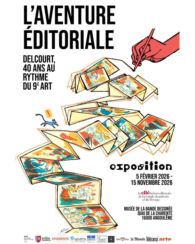 Au Musée de la bande dessinée d’Angoulême, vous pouvez découvrir l’exposition « L’aventure éditoriale – Delcourt, 40 ans au rythme du 9e art » jusqu’au 15 novembre 2026, qui présente un parcours thématique pour retracer l’histoire de la maison avec des planches, couvertures et titres emblématiques sur 400 m2.
